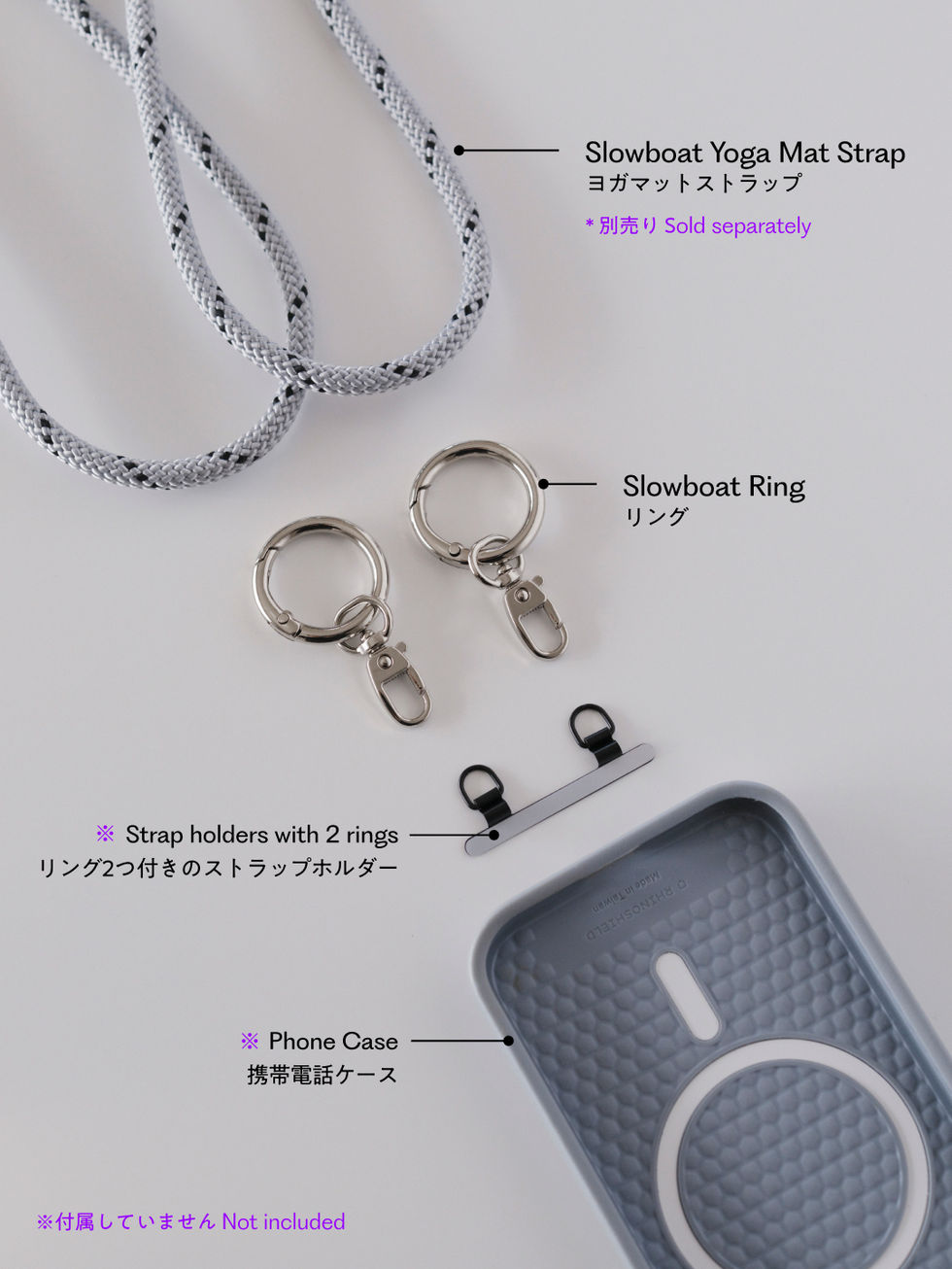 Attach the rings to your yoga mat strap, then simply clip them onto a phone strap holder (sold separately).